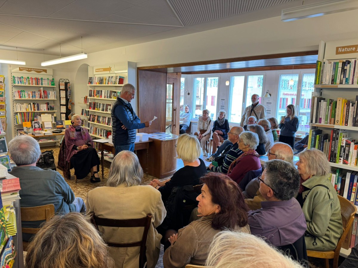 L’éditeur, Daniel Musy, a présenté la genèse des Éditions Sur le Haut, créées en 2019. Avec la publication de près de 40 ouvrages, on peut dire, à l’image du sureau, qu’elles sont prolifiques. Il a aussi souligné le bonheur de vernir dans le canton du Jura un livre d’une Jurassienne bernoise de Tramelan et d’un Jurassien neuchâtelois de La Chaux-de-Fonds. En plus dans la librairie d’un de ses anciens étudiants au lycée !