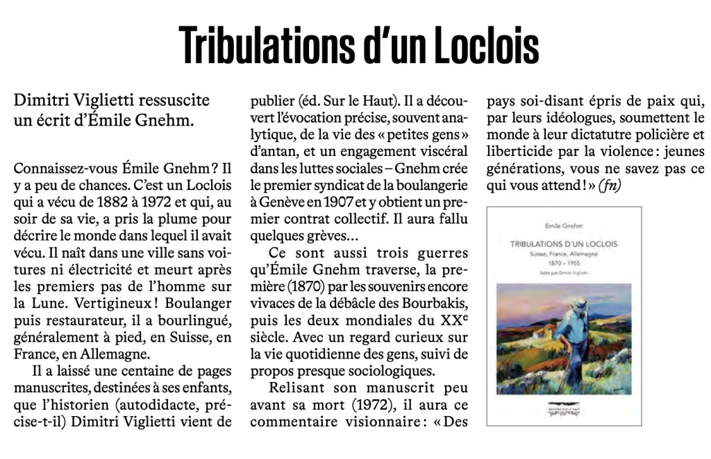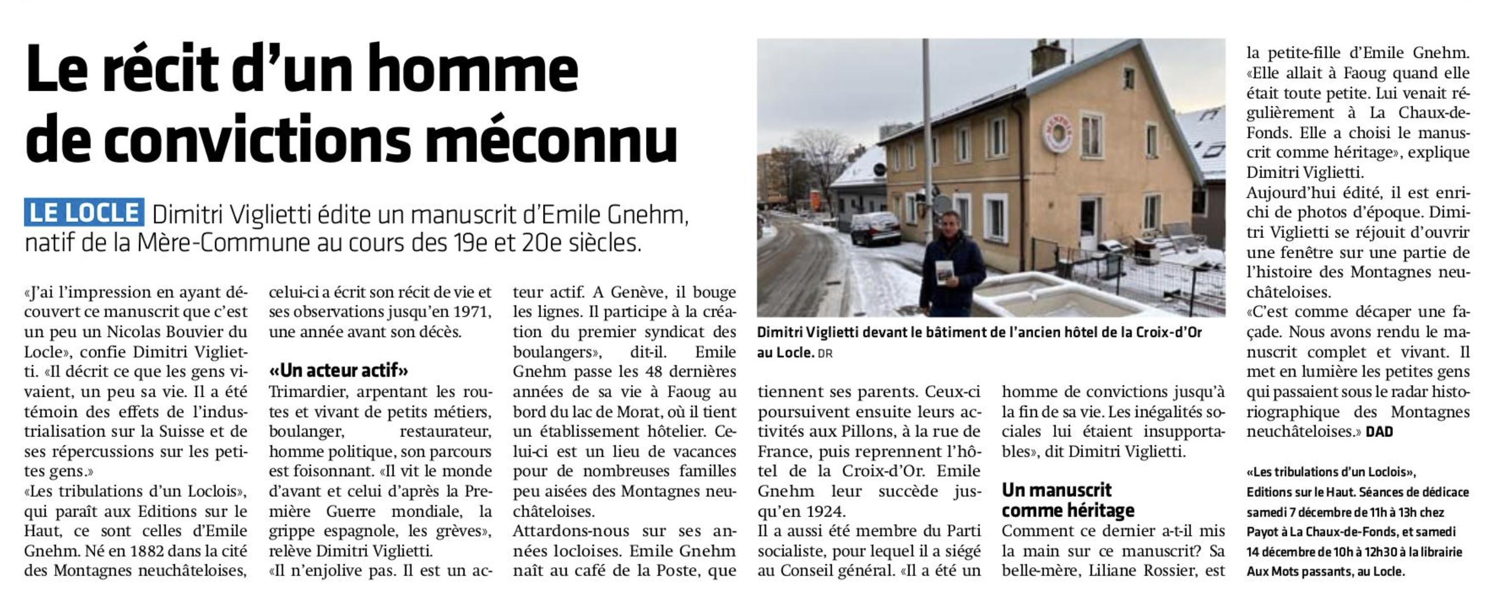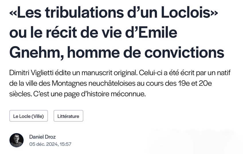Le 5.12.2024, Daniel Droz consacre un article à l’ouvrage dans ArcInfo.